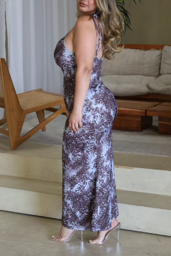 A maxi dress with a soft abstract print and versatile strap detail. Lightweight, flattering, and perfect for day to night wear.
